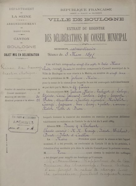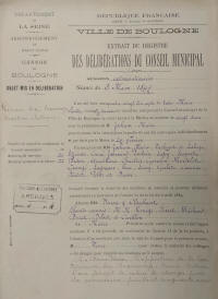 Ville de Boulogne-sur-Seine, extrait des délibérations du Conseil municipal en