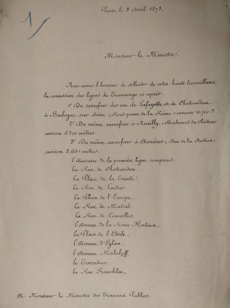 lui accorder tous les tramways à créer dans Paris, cela par une raison d'intérêt