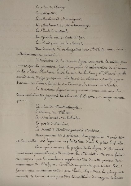 faire remarquer que la nombreuse agglomération de cette partie des Communes de Clichy et Levallois, ne possède que toutes les heures une communication avec Paris ; il n'y a donc la plus grande