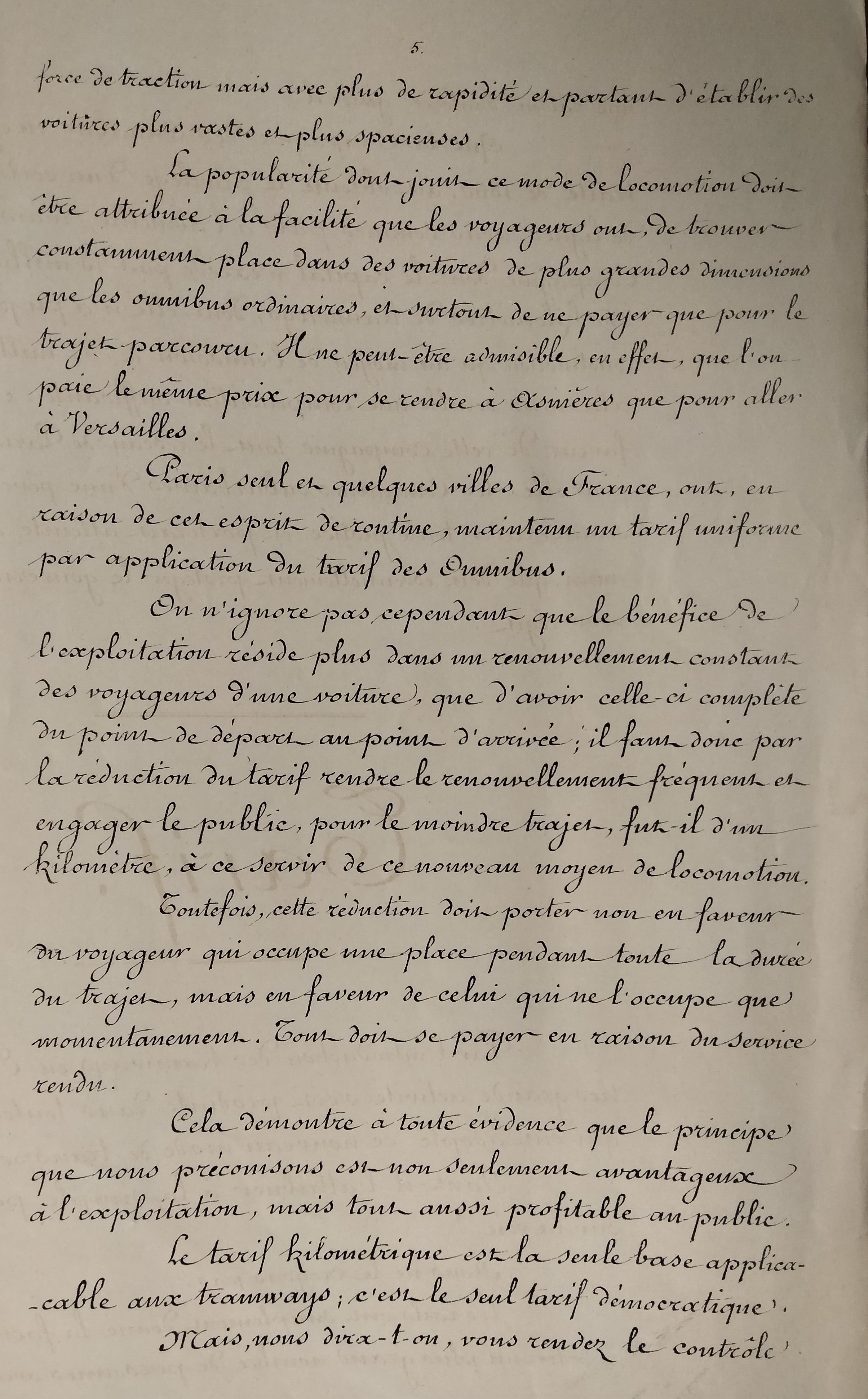 Pour le tarif de 0f,05c le kilomètre nous croyons devoir