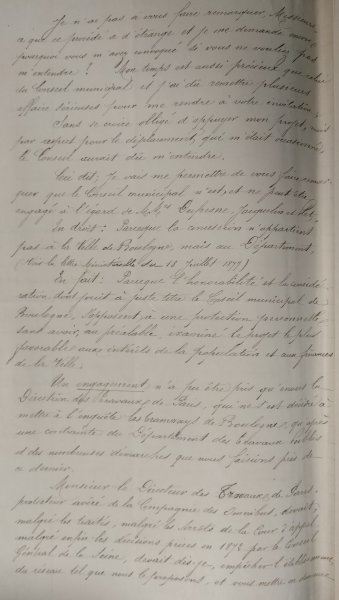 Le Gouvernement et le Département de la Seine en soumettant à l'enquête un projet de tramway à établir dans l'intérieur de Boulogne, ont reconnu