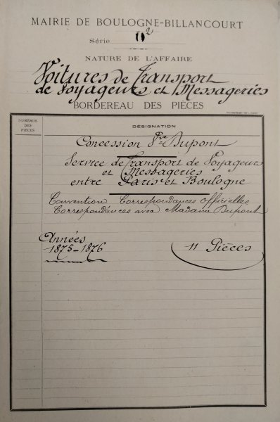 Le Projet d'un service de voitures entre Boulogne et Paris - Concession Dupont (1875-76)