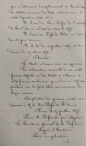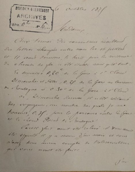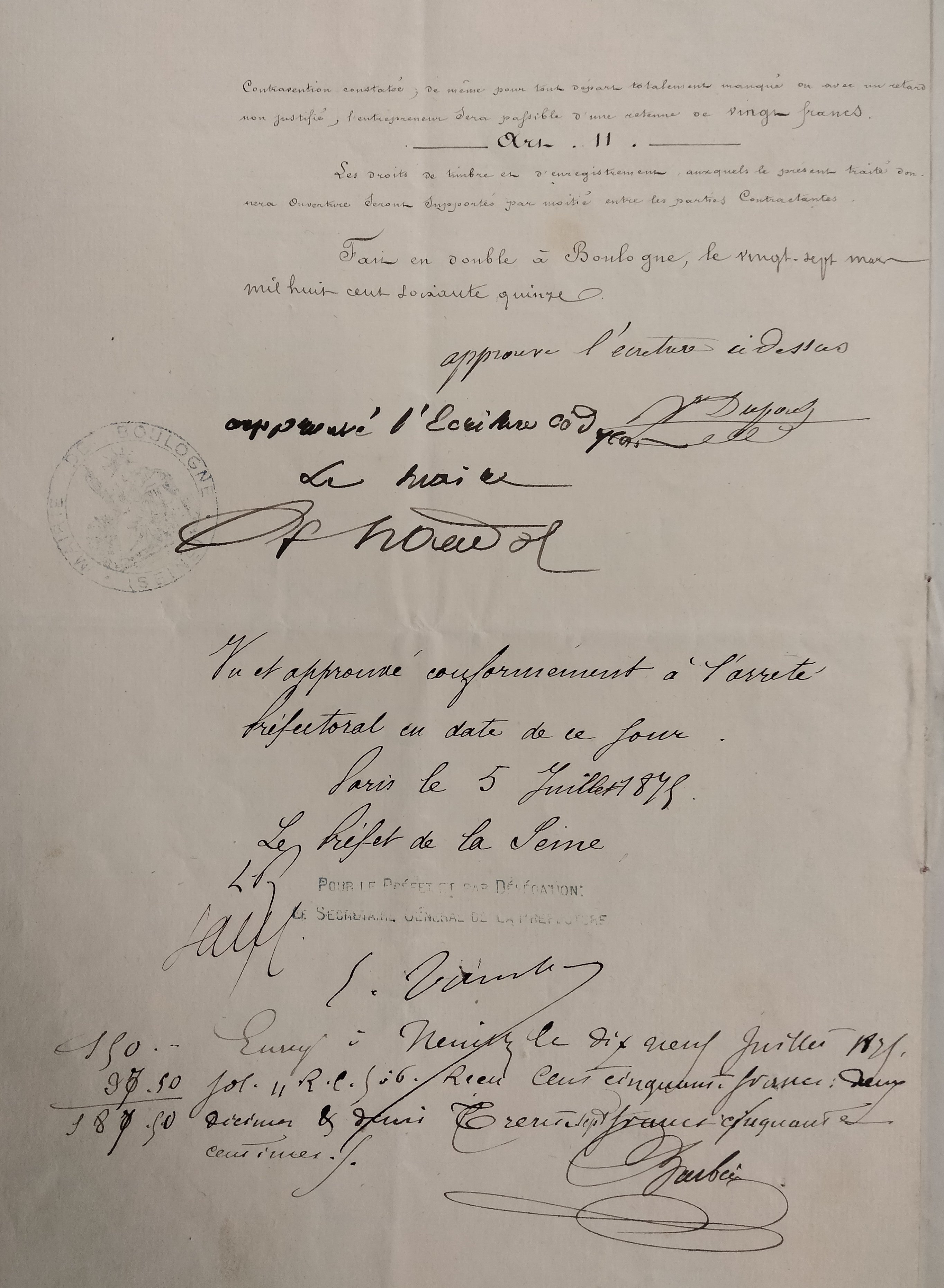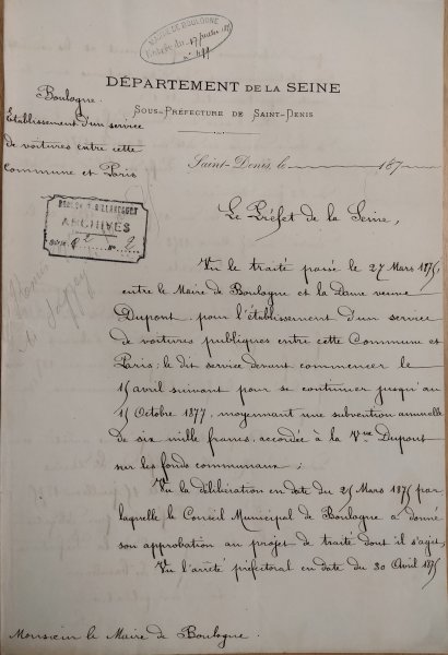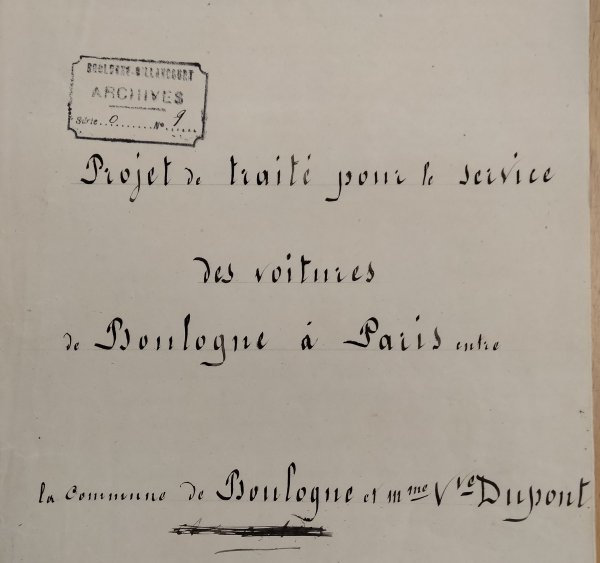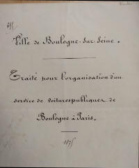 Le 25 mars 1875, traité pour le service des voitures de Boulogne à Paris entre