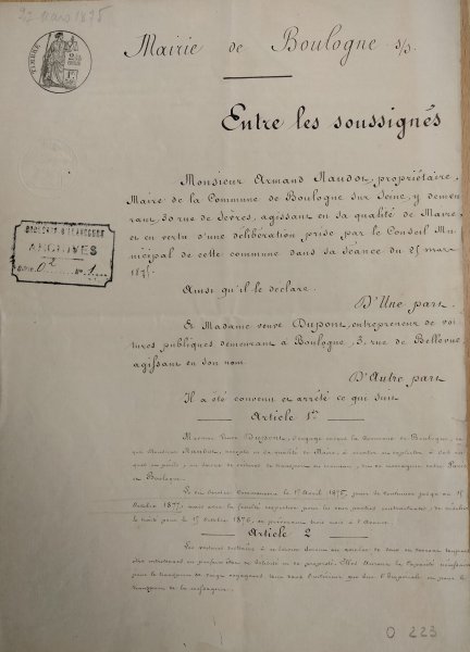 Boulogne à Paris entre la Commune de Boulogne et Madame Vve Dupont.