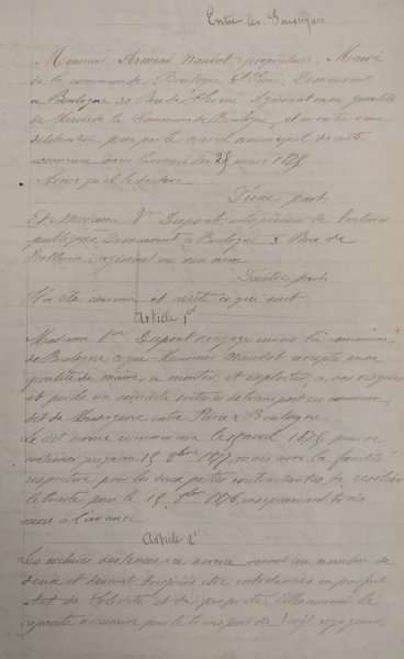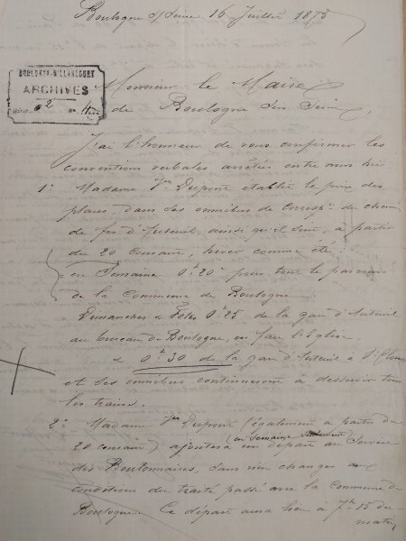 adressée au Maire de Boulogne-sur-Seine1 et un projet te traité dont on a