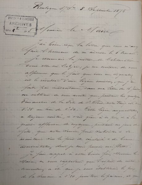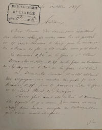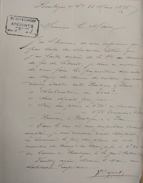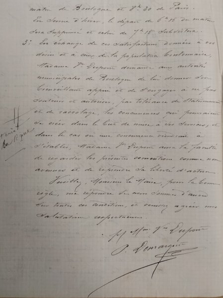 Le 8 septembre 1875, Mme Vve Dupont écrit au Maire de Boulogne.