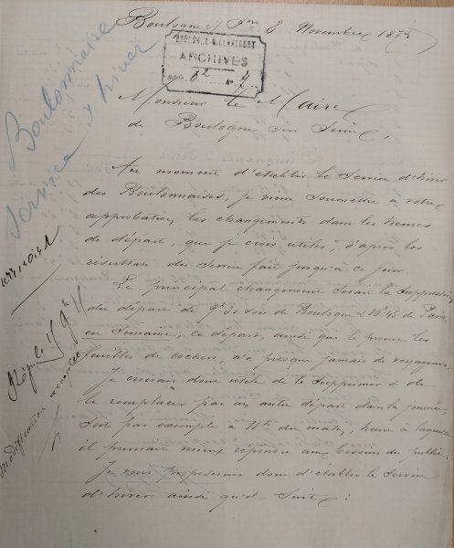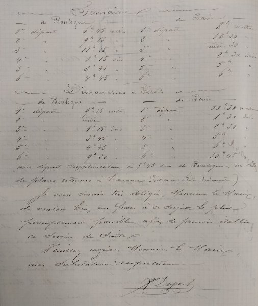 Le 8 novembre 1875, Au moment d'établir le service d'hiver des Boulonnaises, je