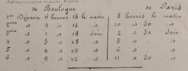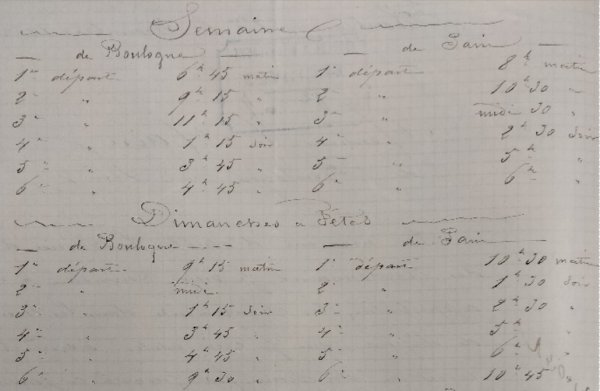 départ de Boulogne, à midi et à 1h30 de Paris.