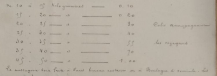dimanches et fêtes 0f,25 de la gare au bureau de Boulogne et 0f,30