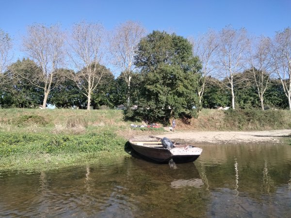 Lever vers 7h30 (heure théorique bien respectée),. petit déjeuner sur la plage, vaisselle du repas de la veille, rangement, puis nous regagnons la rive droite où sont restés les bateaux de la flottille qui s'est agrandie avec l'arrivée d'autres embarcations.