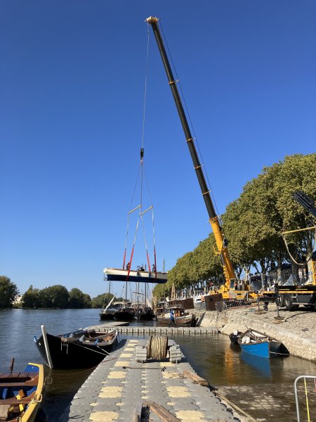 est grutée, puis acheminée sur le canal en amont de la capitainerie.