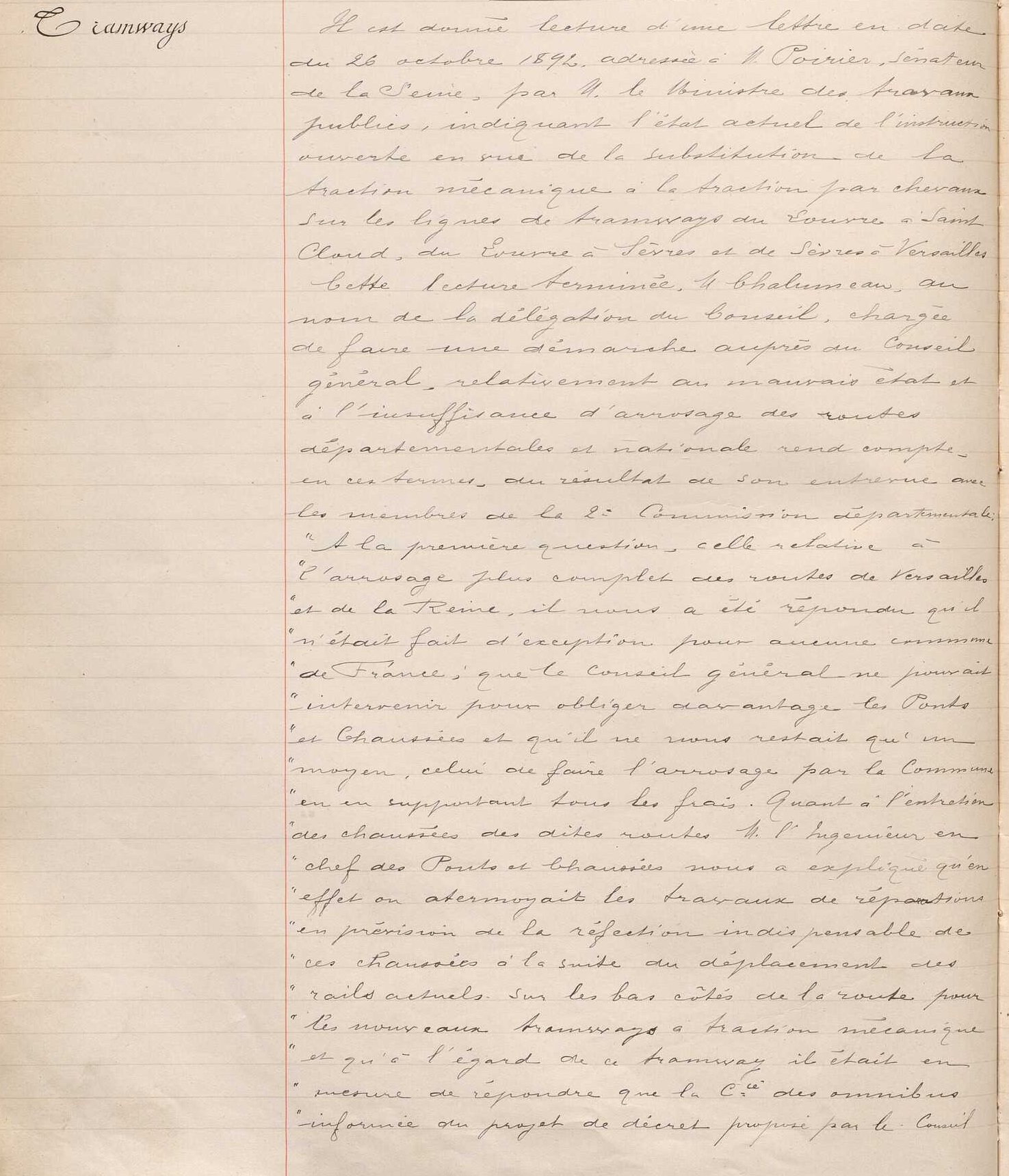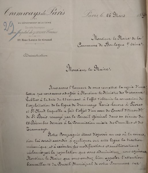 Le 26 mars 1889, le Président du Conseil d'administration des Tramways de Paris