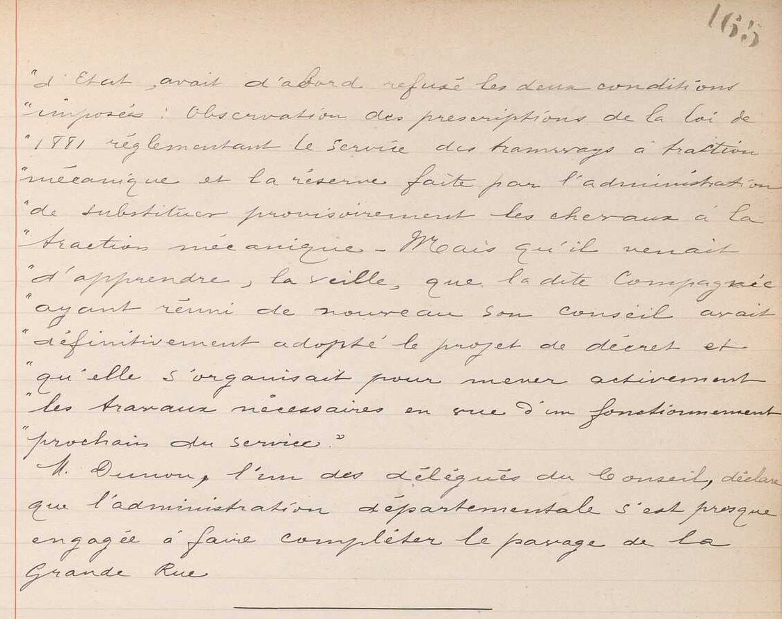 tramways et demande le rétablissement et la stricte observation de l'ancien