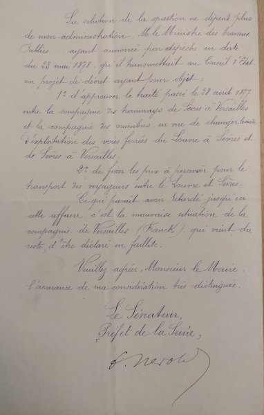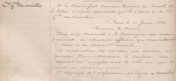 Paris le 10 février 1893 - Monsieur le Maire, vous avez demandé à la la Compagnie des