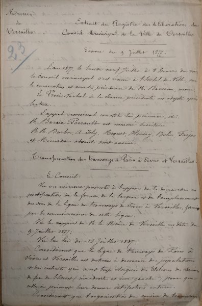 du Conseil municipal de la Ville de Versailles. Séance du 7 juillet 1877.
