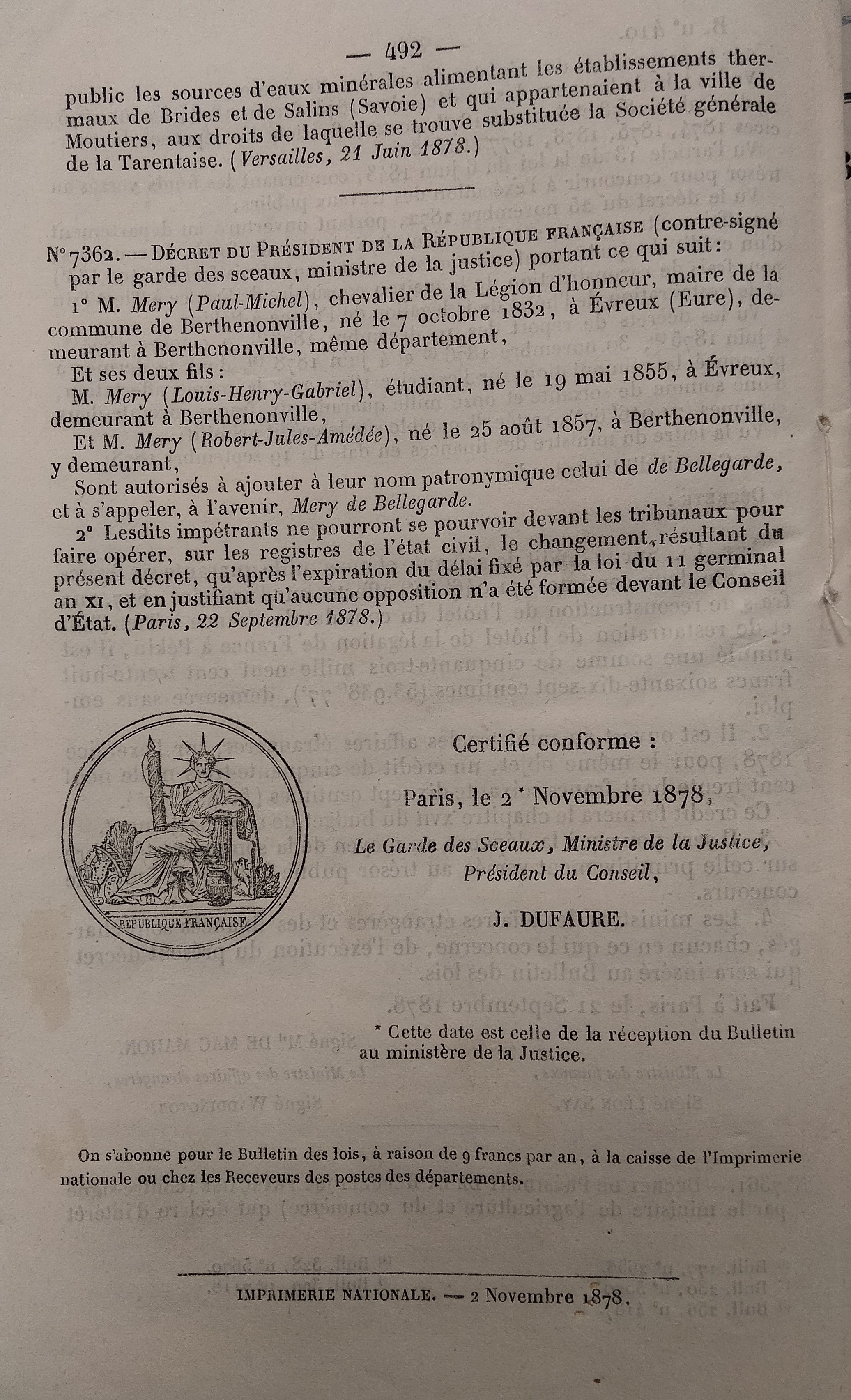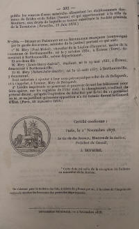 Le 21 novembre 1892, il est donné lecture d'une lettre en date du 26 octobre 1892