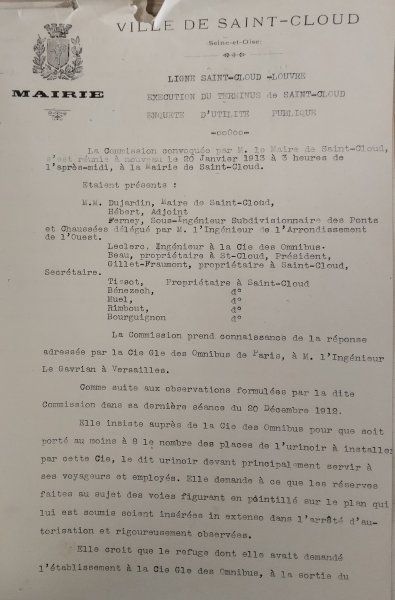 La Commission convoquée par le Maire de Saint-Cloud s'est réunie au bureau le 20 janvier